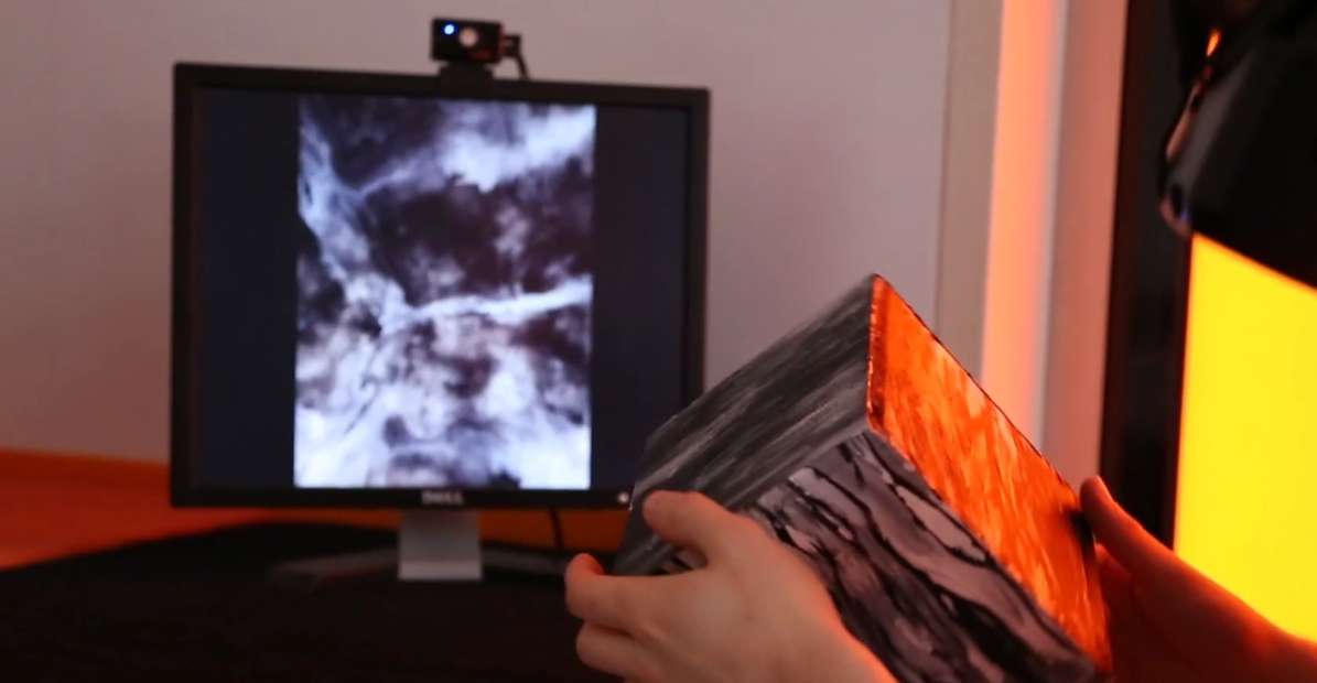 In 2016, Alexandre Gomez and I created "Parallélogrammes," a VR installation featuring a custom-made electronic object. The presentation setup includes a VR device (Oculus), a table, a chair, and a foam board cube with integrated electronics, all developed using Unity and Arduino API. This project was exhibited at the "Les Bains Numériques" festival as part of the "Fabrique Numérique" in Enghien-les-Bains, France, and during the Arts Week at Paris 8 University in 2016. "Parallelograms" explores the concepts of space and the spectator's positioning within a virtual reality environment, both conceptually and physically, by virtually placing them inside the cube they manipulate.